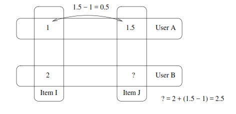 Si observamos las diferencias de ratings entre pares de items, podemos hacer una predicción.